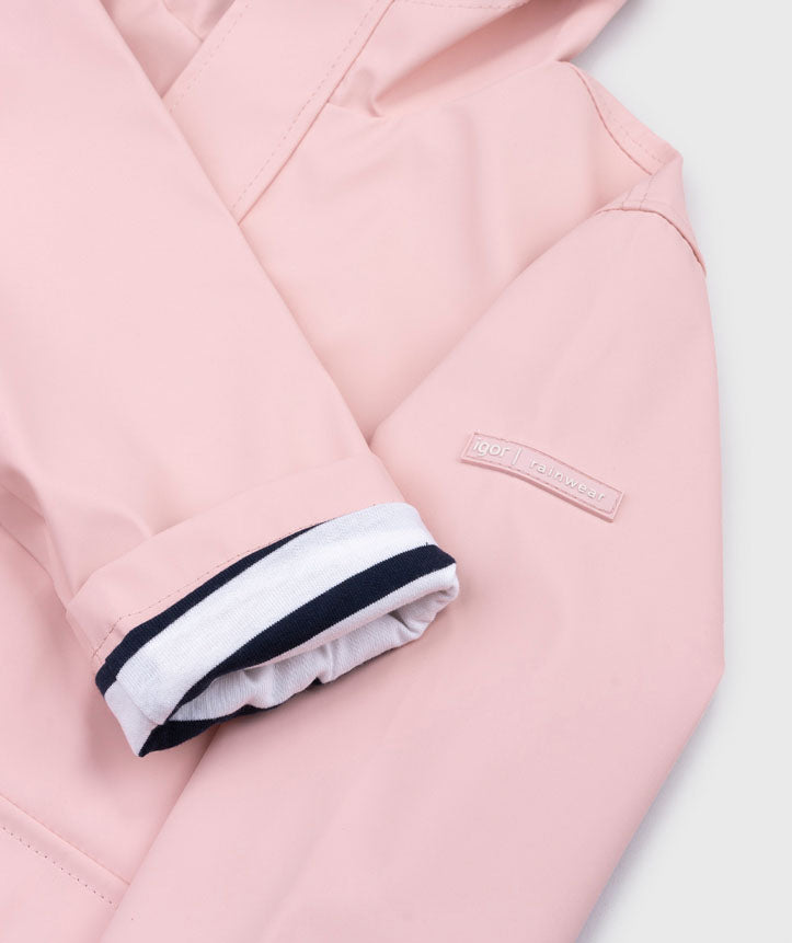 Igor Giacca Impermeabile è perfetta per le giornate di pioggia, in stile nautico con fodera interna in cotone jersey a righe, grandi tasche frontali, cappuccio e protezione antivento.