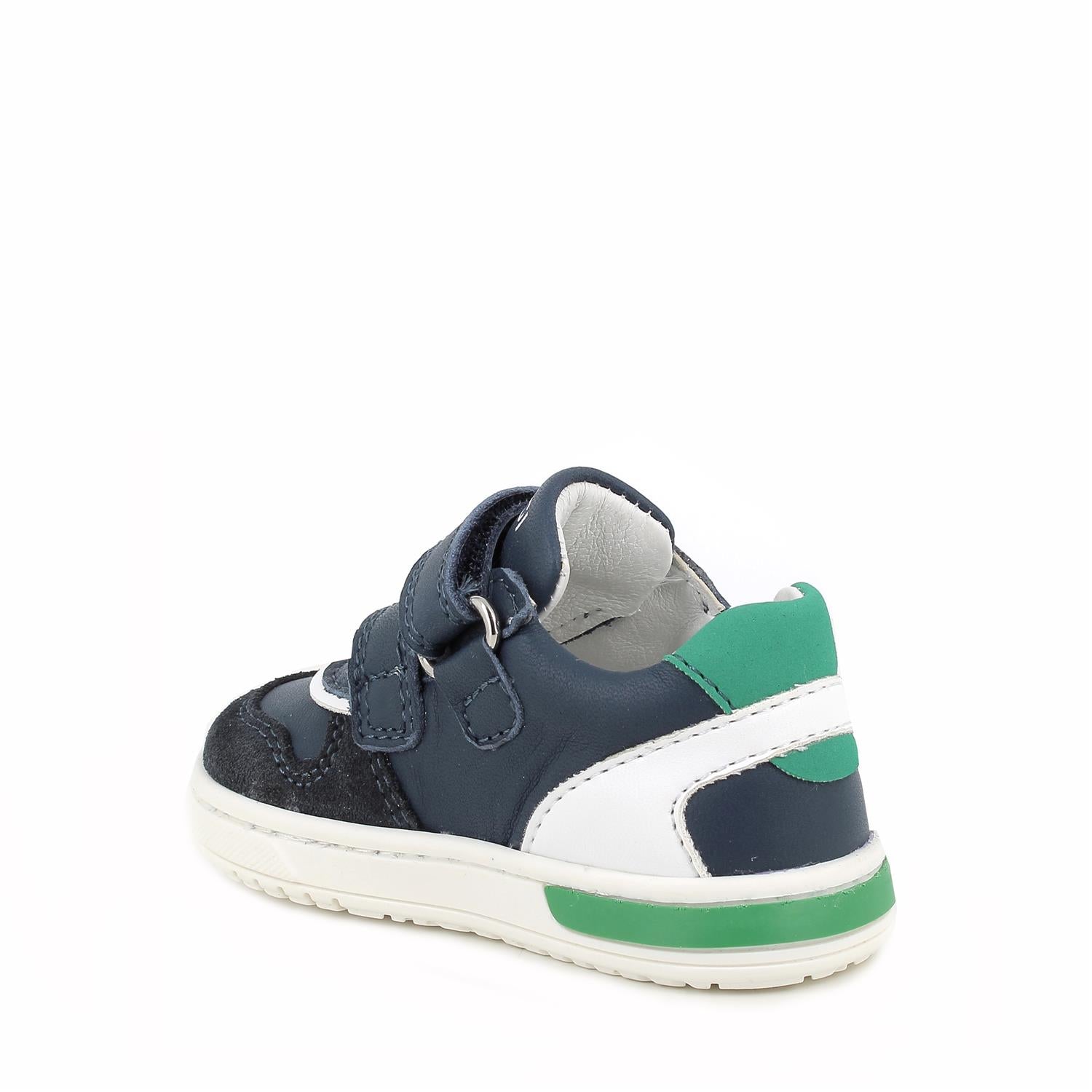 Sneakers dalle linee ispirate al mondo del basket perfette per le prime corse e le passeggiate all'aperto. La cura del dettaglio, nelle forme e nei colori, permette di percepirne l'elevata qualità. Realizzate con massima attenzione al benessere del bambino, sono morbide ed accoglienti. Proteggono il piedino con le imbottiture localizzate nei punti giusti ed hanno una forma adatta ad accoglierlo al meglio. Il sottopiede anatomico è estraibile e rivestito in pelle per assicurare traspirabilità e igiene.
